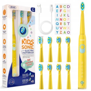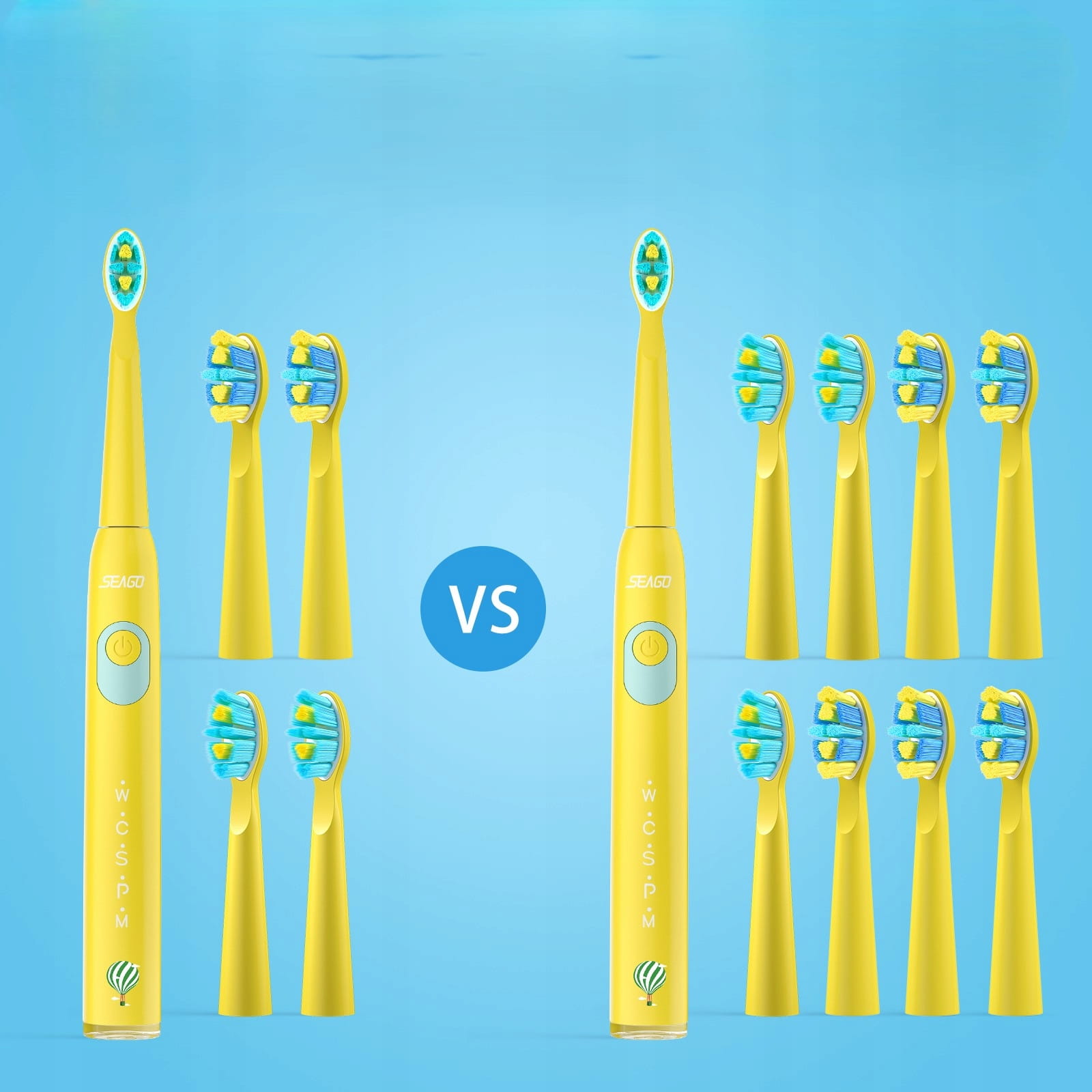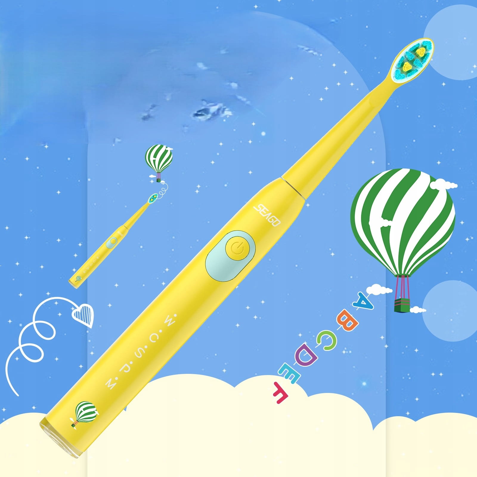 Szczoteczka soniczna dla dzieci, akumulatorowa, Seago SG-2303, kolor żółty, zestaw z 8 końcówkami