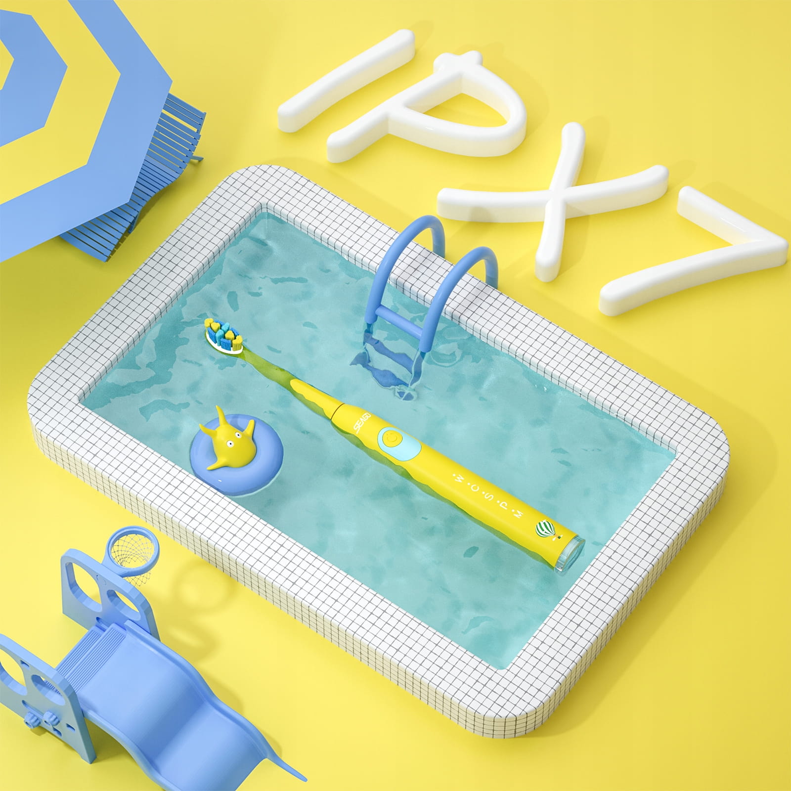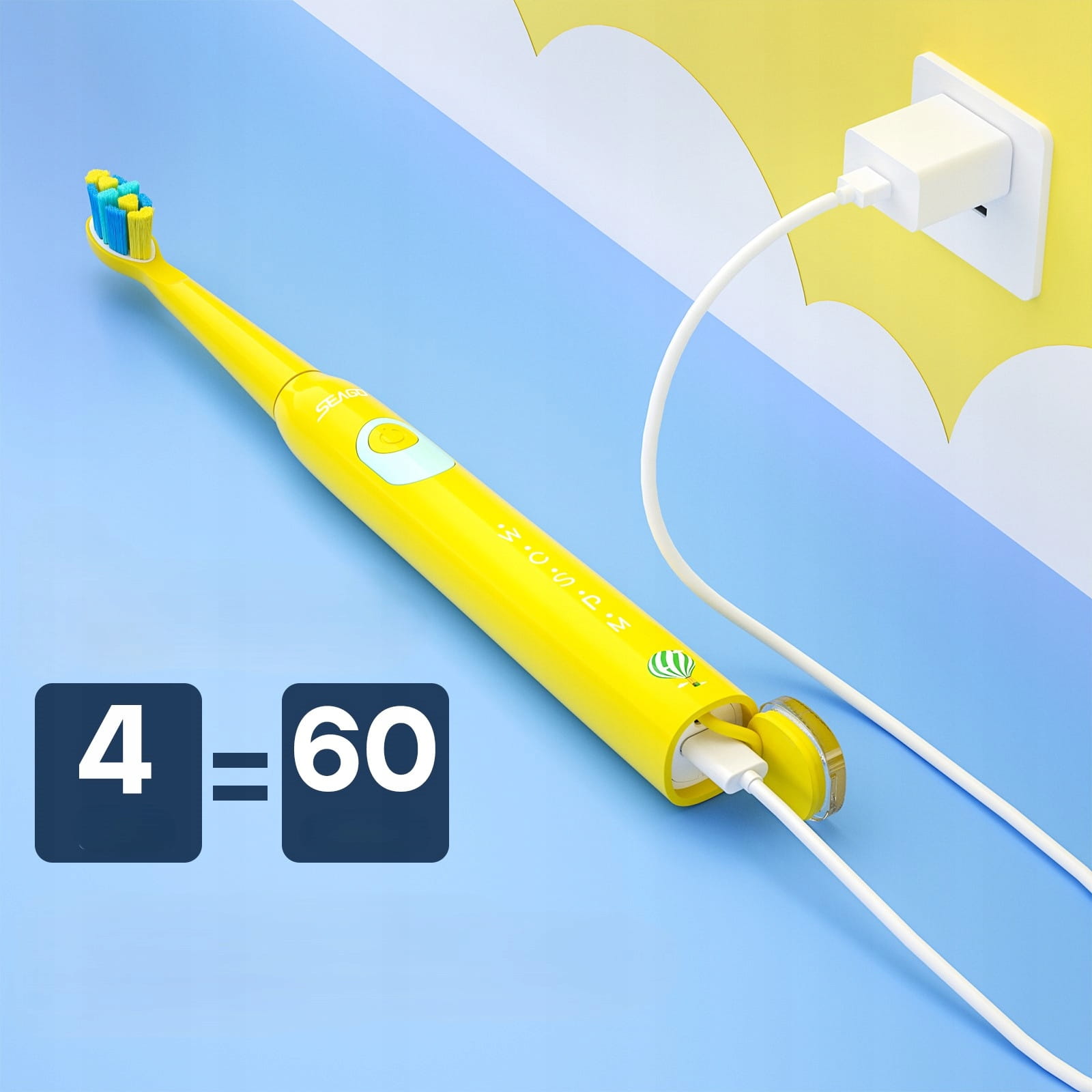 Soniczna szczoteczka dla dzieci 6-12 lat SEAGO SG-2303, 8 końcówek - żółta