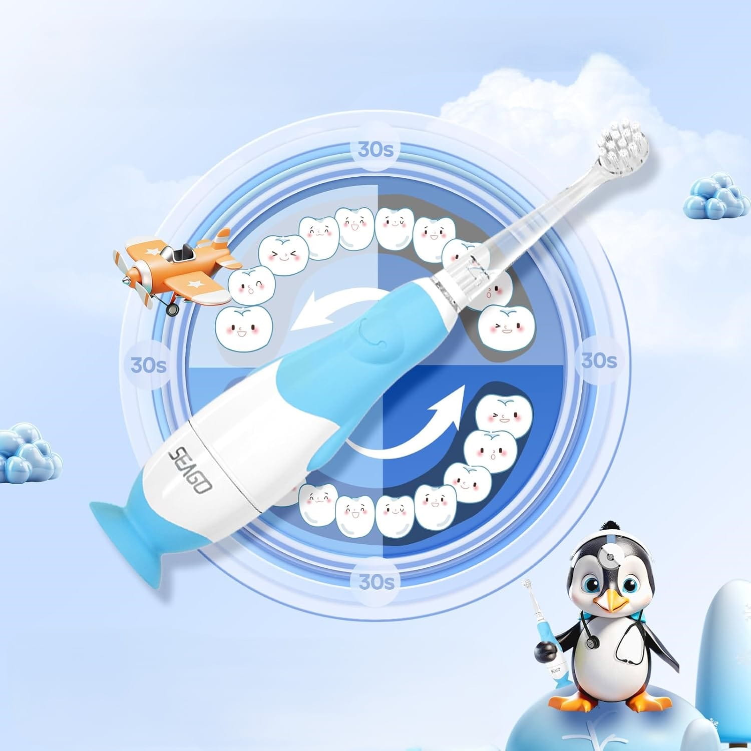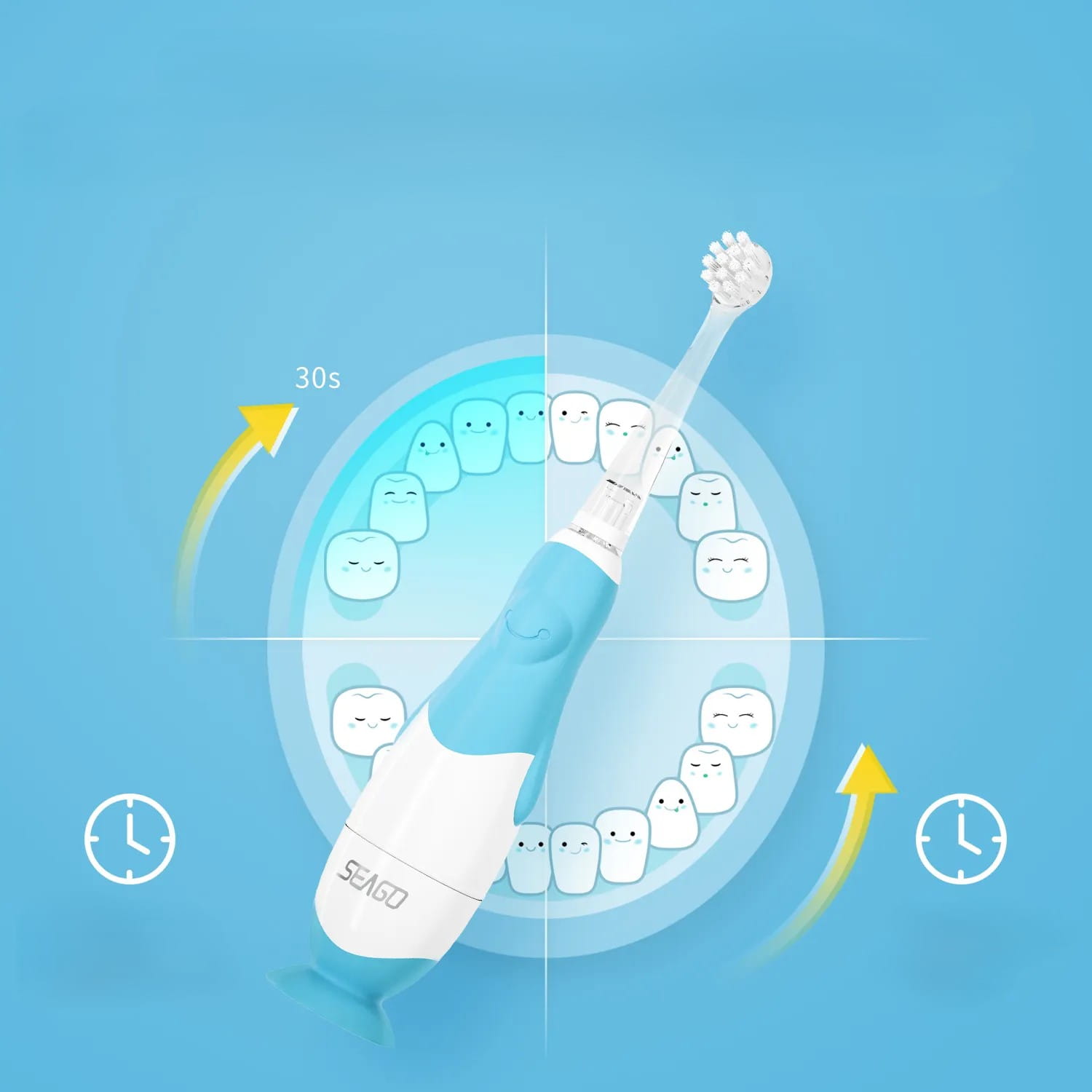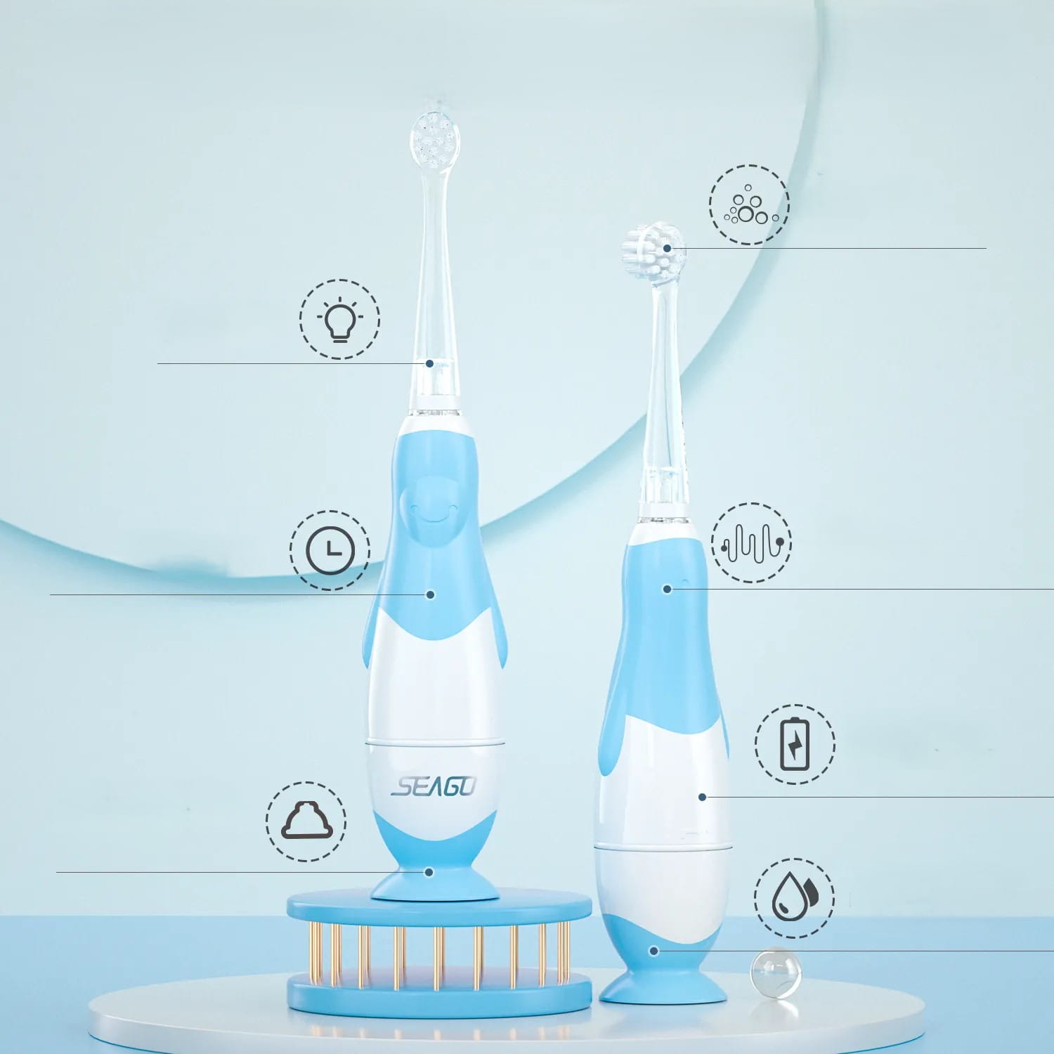 Szczoteczka została zaprojektowana w taki sposób aby pomóc rodzicom w zachowaniu optymalnej higieny jamy ustnej swoich dzieci. Szczoteczka SEAGO ze swoim miękkim włosiem oraz delikatnymi drganiami jest idealnym narzędziem pozwalającym najmłodszym na delikatne oraz dokładne czyszczenie powierzchni zębów i dziąseł.